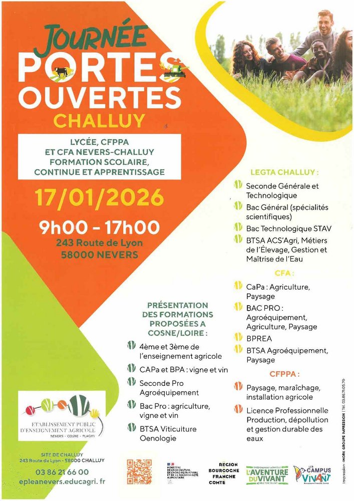 - Le Centre de Formation Professionnelle et de Promotion Agricoles (CFPPA ), sites de Nevers et de Cosne-sur-Loire.