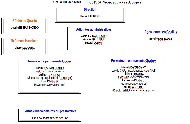 - les organismes de formation partenaires : Réseau des CFPPA’s de Bourgogne-Franche-Comté, EPLEFPA de Nevers-Cosne-Plagny, INFA, Greta 58, ...