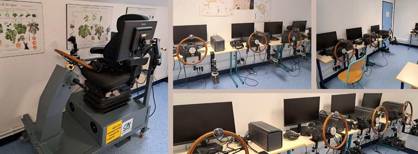 Afin de renforcer la professionnalisation des formations viticoles, l’établissement est équipé depuis mars 2024 de simulateurs de conduite d’enjambeurs en réalité virtuelle (7 E‑Cab légers et 1 E‑Cab nacelle). Ces équipements ont pu être acquis grâce au soutien financier de la Région Bourgogne‑Franche‑Comté, ainsi qu’avec l’appui de Groupama, de la MSA et du Crédit Agricole, partenaires engagés aux côtés de l’établissement dans la formation des futurs professionnels du secteur agricole et viticole.