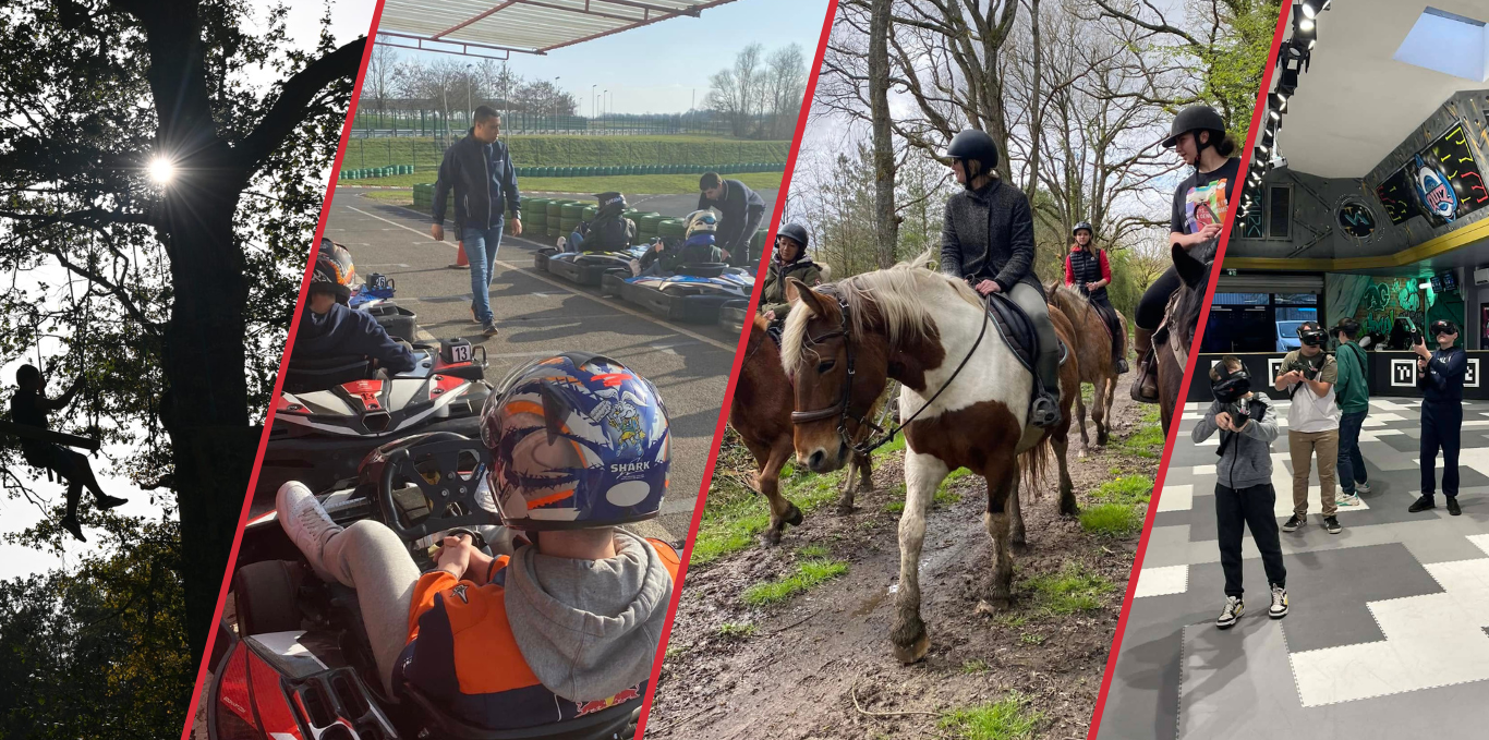 équitation, concerts, pêche, sorties nature, accrobranche, karting, lasergame, bowling, réalité virtuelle, et bien d’autres encore.